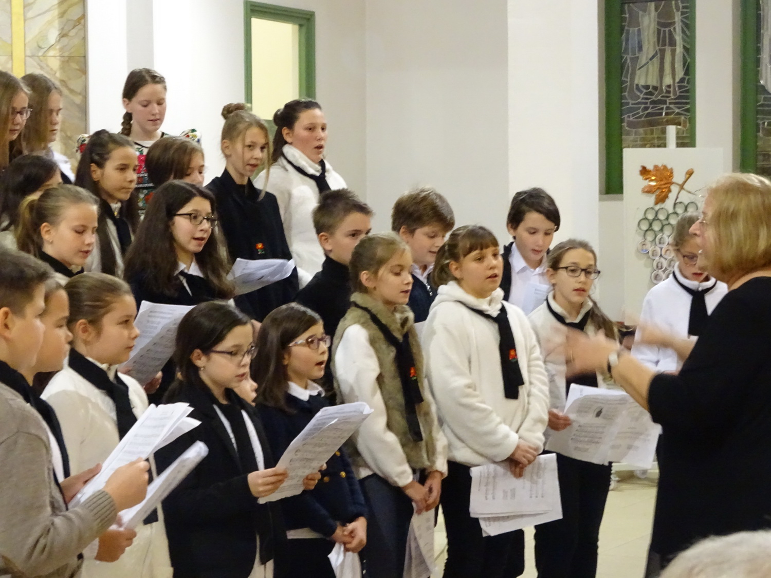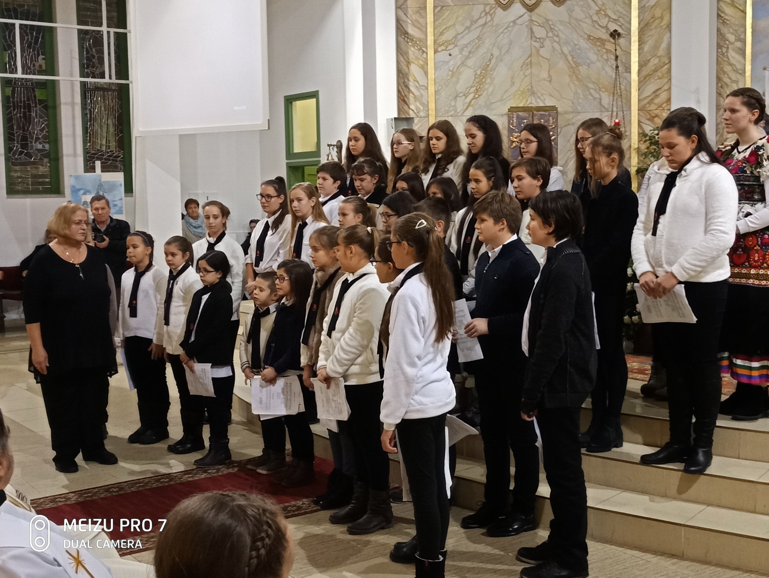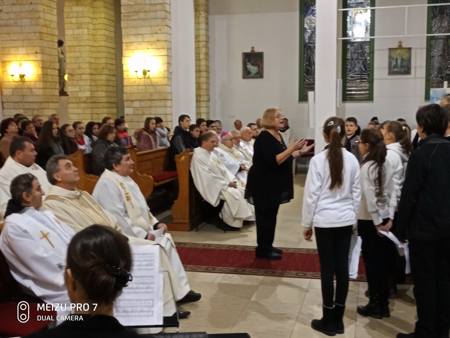 November 25-én a Jézus Szíve templomban az esti szentmise előtt rövid zenés áhítatban tisztelegtünk Szent Cecília, a zene védőszentje előtt. Két orgonaszám között dalolt iskolánk énekkara. Egyszólamú, kánon, és többszólamú egyházi művek csendültek fel ajkukon Kovácsné Együd Ilona tanárnő vezetésével. Zongorán kísért Patainé Péter-Szarka Éva tanárnő és Kovács Blanka 7.a osztályos tanuló.