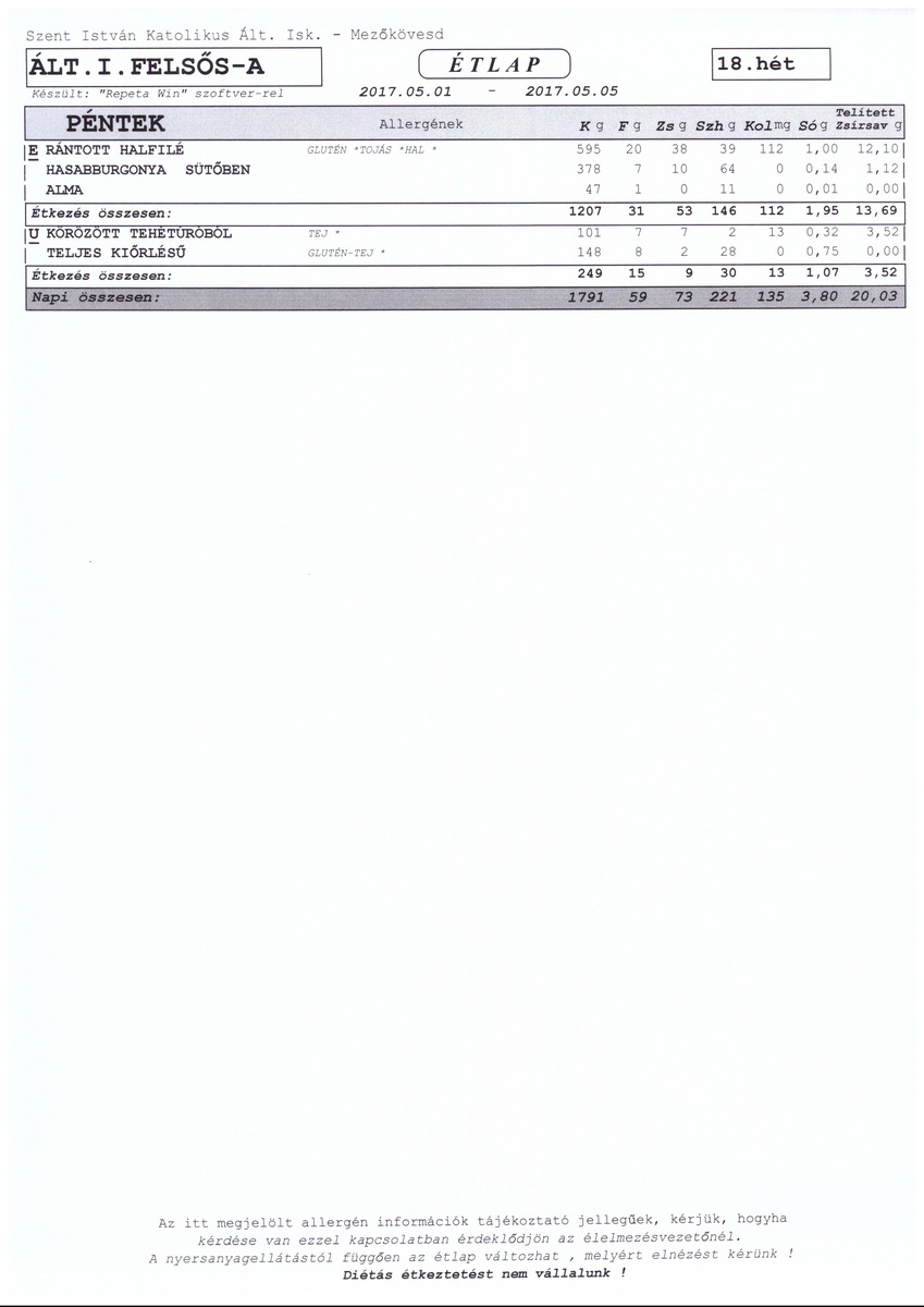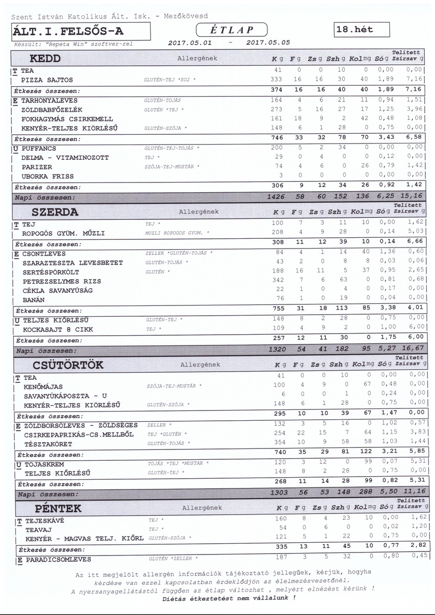 Heti étrend – 18. hét –