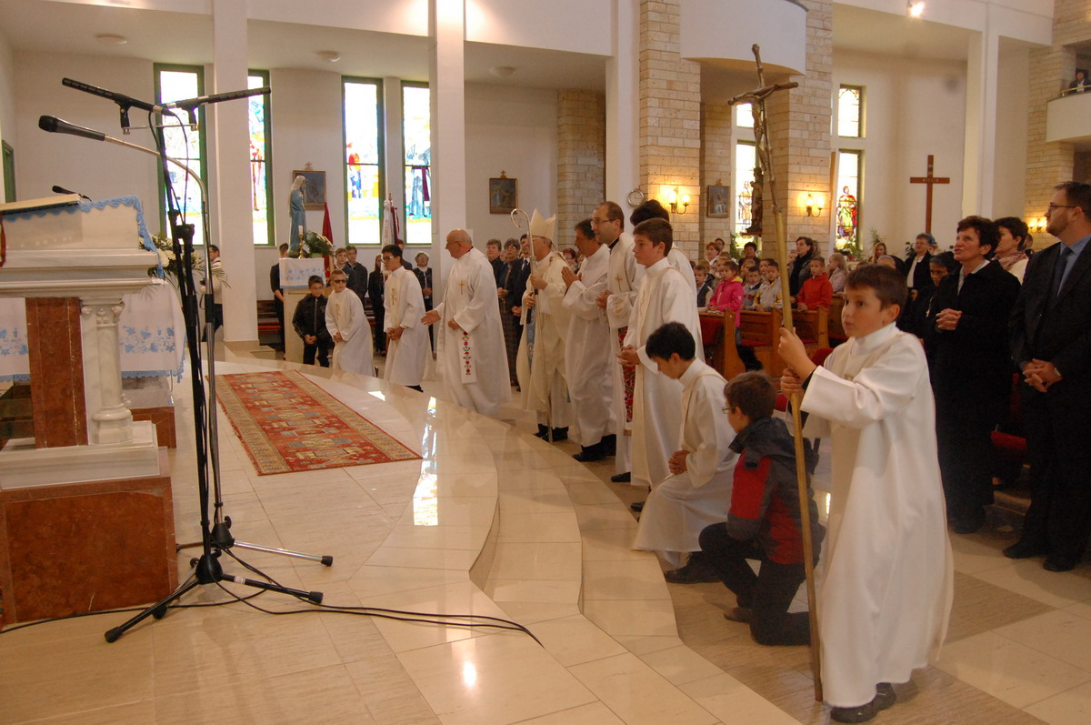 11 órakor a Jézus Szíve templomban került sor az ünnepi szentmisére, melyet dr. Ternyák Csaba egri érsek úr mutatott be. Homíliájában kiemelte, hogy október hónap tele van ünnepekkel, melyek közül kiemelkedik október 8-a, a Magyarok Nagyasszonya ünnepe. Ezen a napon tartja a Szent István katolikus iskola védőszentjének ünnepét.