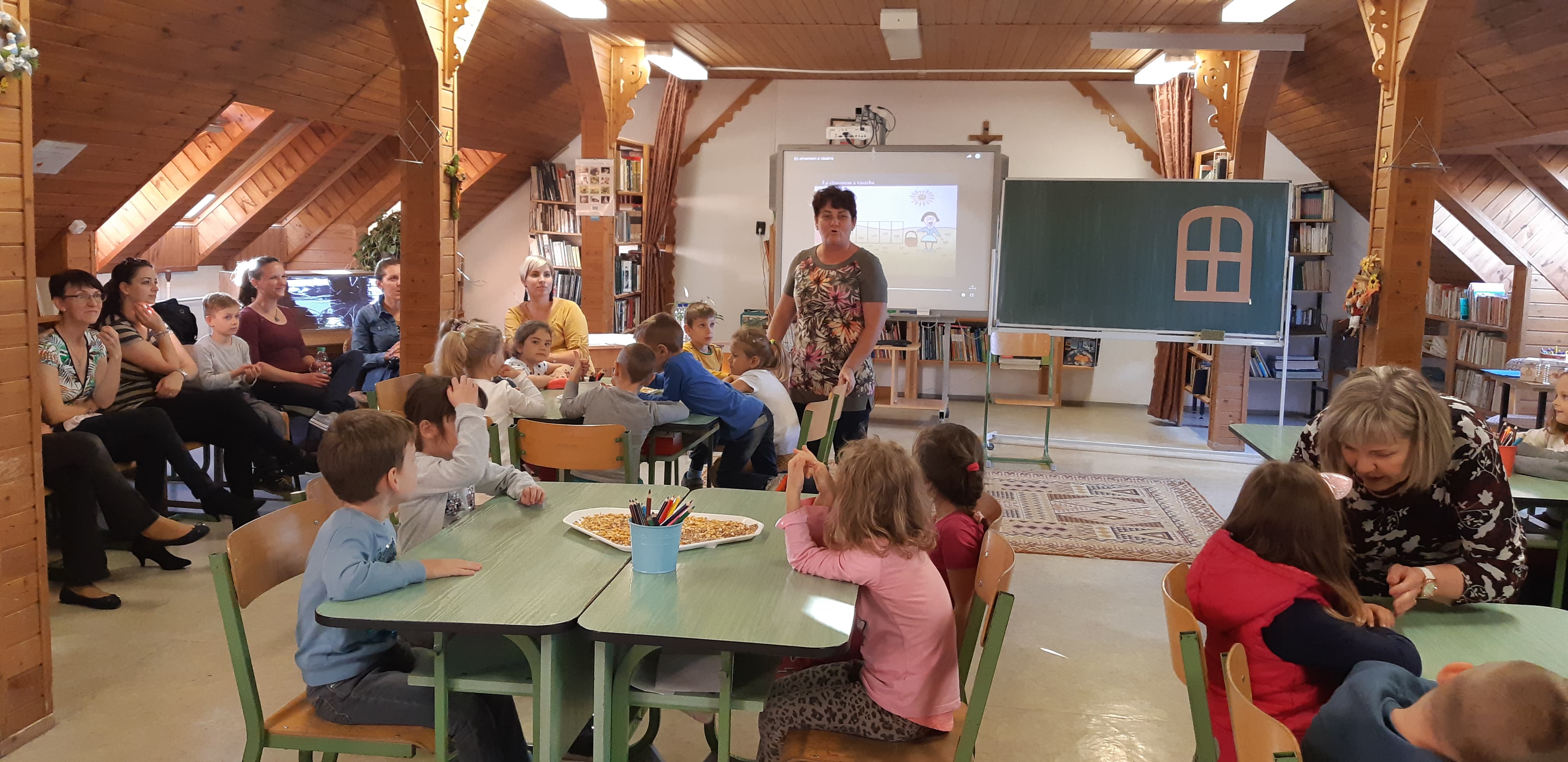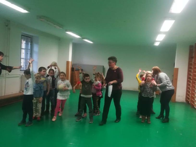 Az iskola kis tornatermében egy akadálypályán mozgatták meg a nevelők a kicsiket. Ezen kívül sor került meseolvasásra, s az interaktív tábla segítségével rendkívül szemléletes módon még bábjátékot is láthattak a gyerkőcök.