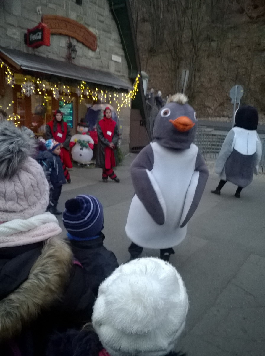 Ezután a Madarasi – Hargitához, Erdély legmagasabb hegycsúcsához buszoztunk. A hegy lábánál még jó idő volt, de mire traktorral felértünk, már mindenki sapkát, kesztyűt húzott. Gyönyörű volt a kilátás. A csúcsig nem mentünk fel, mert térdig ért a hó, de így is jól szórakoztunk. Az szabadidőt hógolyózással töltöttük.