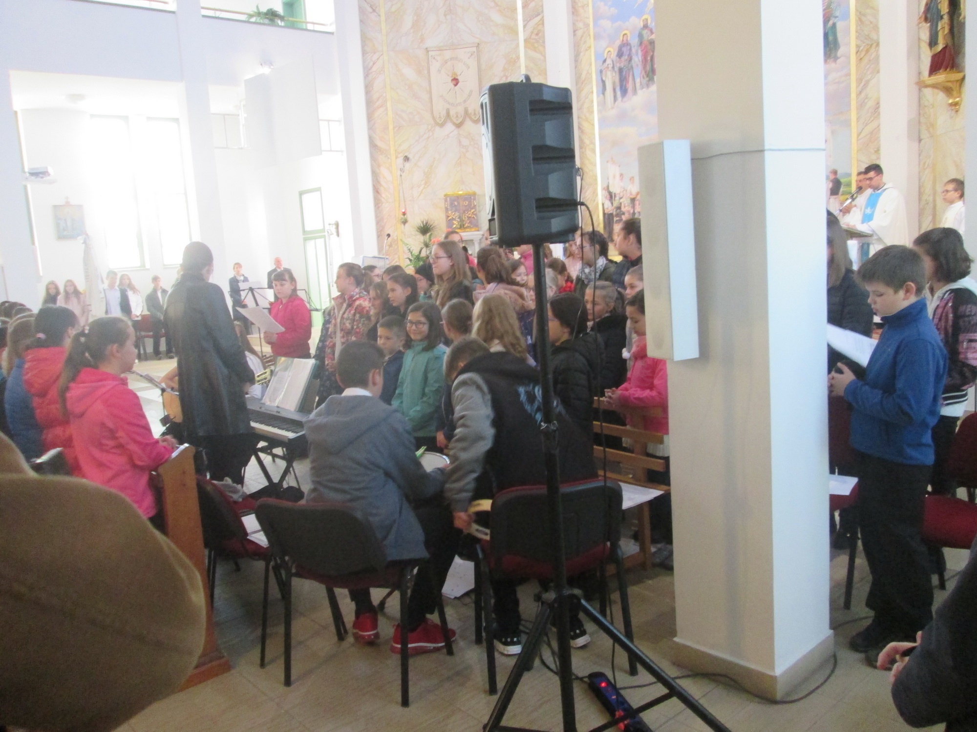 Magyarok Nagyasszonya ünnepén 8.30-tól közös szentmisén vettünk részt a Jézus Szíve templomban. A misén az iskola énekkara ifjúsági (gitáros) énekekkel tette szebbé a liturgiát. Hangszeren közreműködtek: Fehér Noémi (gitár), Kardos Zsófia (gitár, hegedű), Bencsik Karina (fuvola), Patai Dóra (fuvola), Korpa István (dob), Dobos Barnabás (csörgődob), Nagy István (hegedű).