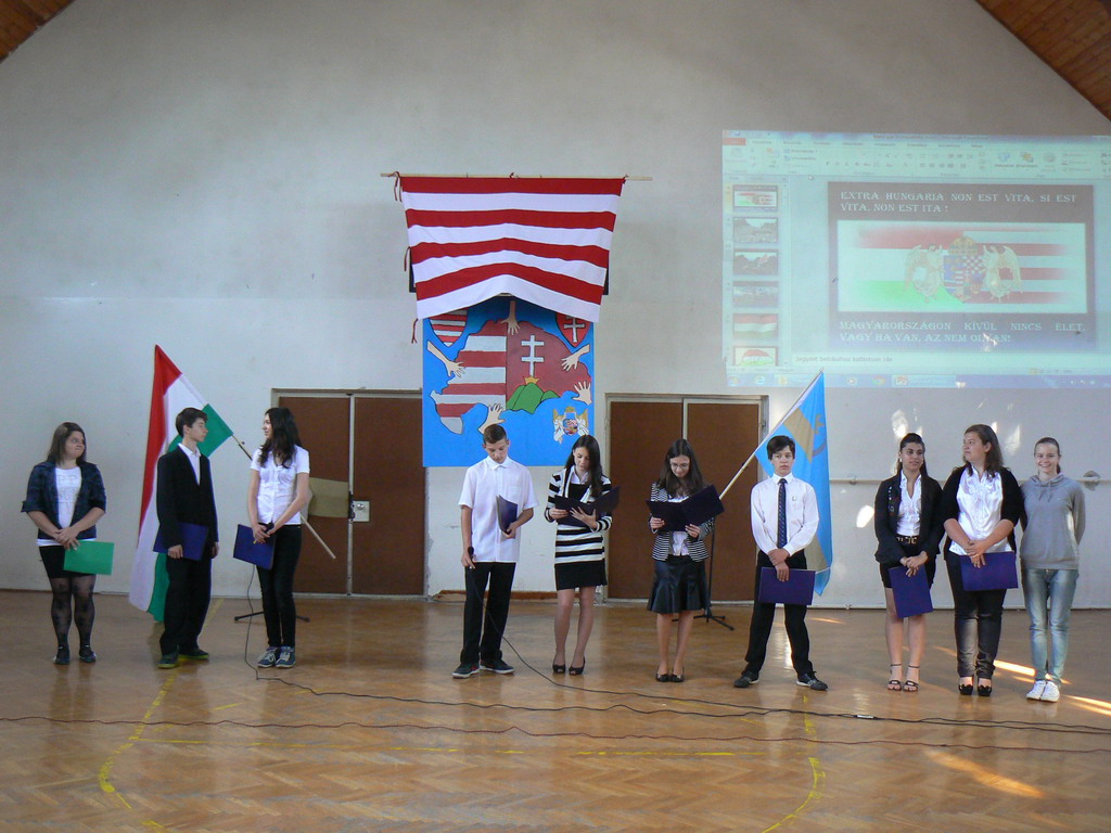 A műsort a 8.a és 8.b osztály tanulói adták elő. Hangszeren Török Kristóf Áron kísérte a magyar és székely himnuszokat. A szereplők mélyen átérezték e nap komolyságát és ehhez illő módon kapcsolódva adták elő magas színvonalon a műsort.