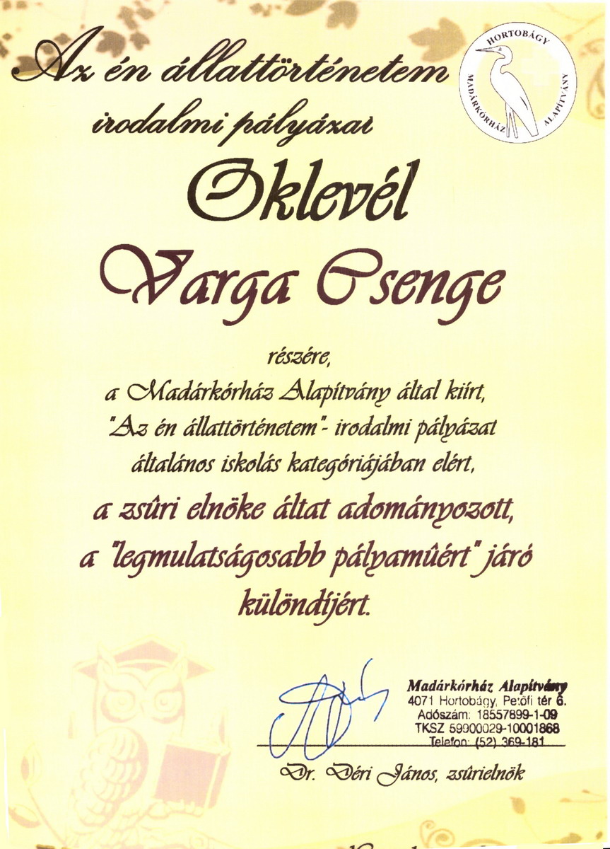 Kedvezményezett: Szent István Katolikus Általános Iskola