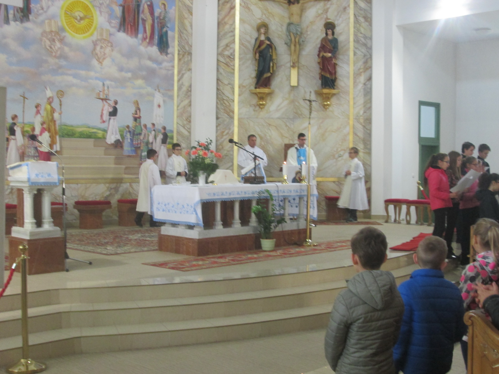 Magyarok Nagyasszonya ünnepén 8.30-tól közös szentmisén vettünk részt a Jézus Szíve templomban. A misén az iskola énekkara ifjúsági (gitáros) énekekkel tette szebbé a liturgiát. Hangszeren közreműködtek: Fehér Noémi (gitár), Kardos Zsófia (gitár, hegedű), Bencsik Karina (fuvola), Patai Dóra (fuvola), Korpa István (dob), Dobos Barnabás (csörgődob), Nagy István (hegedű).