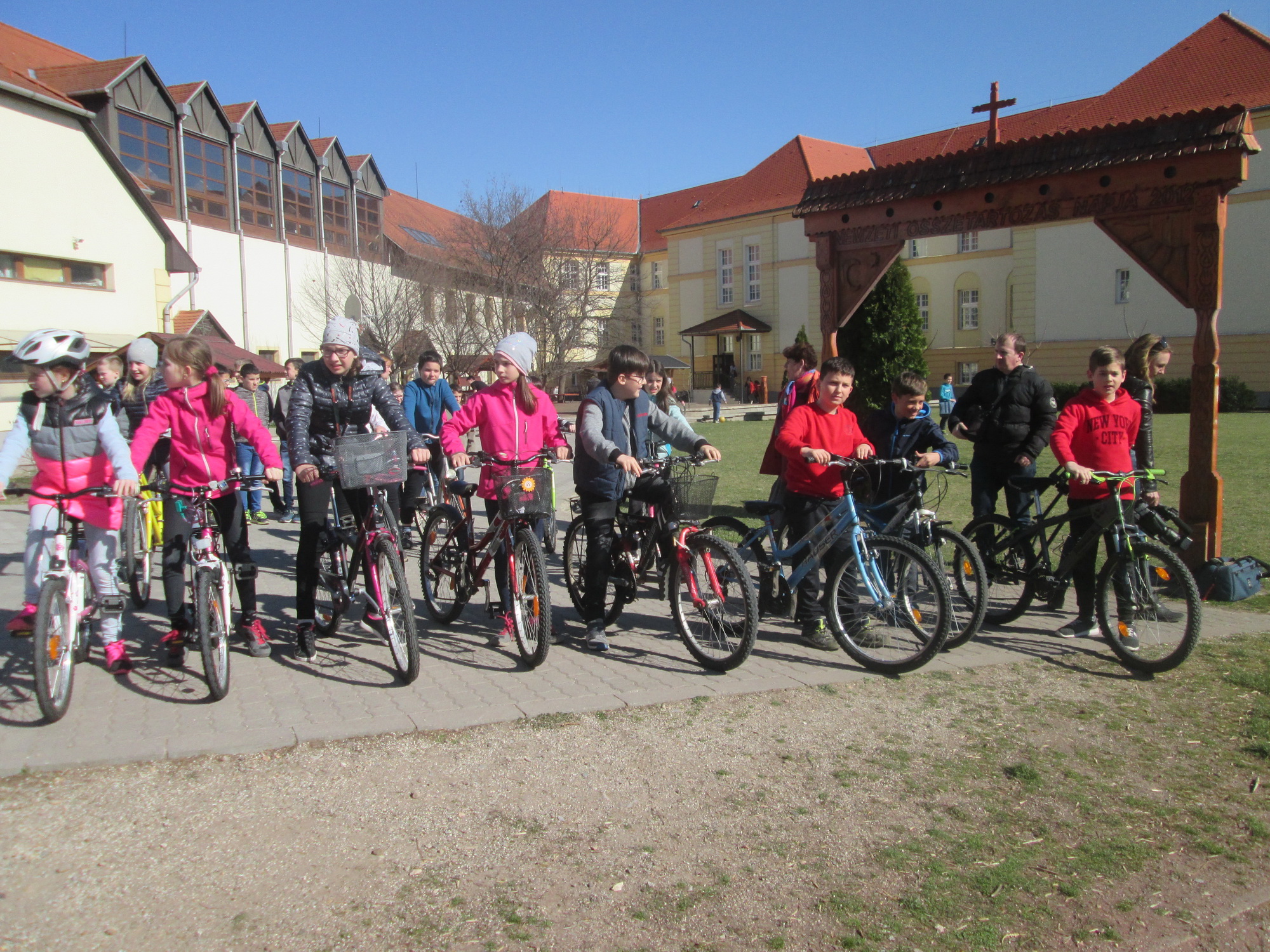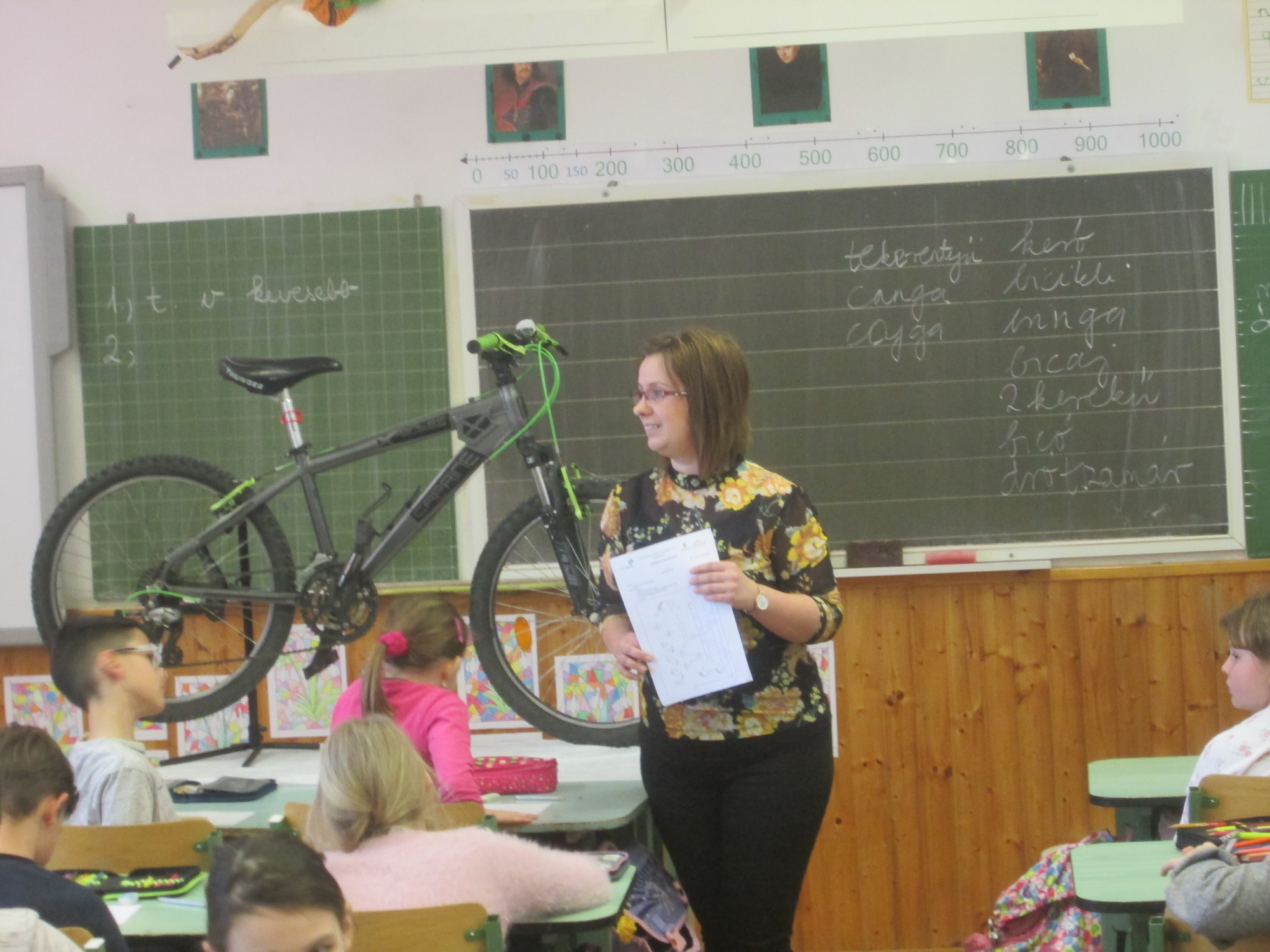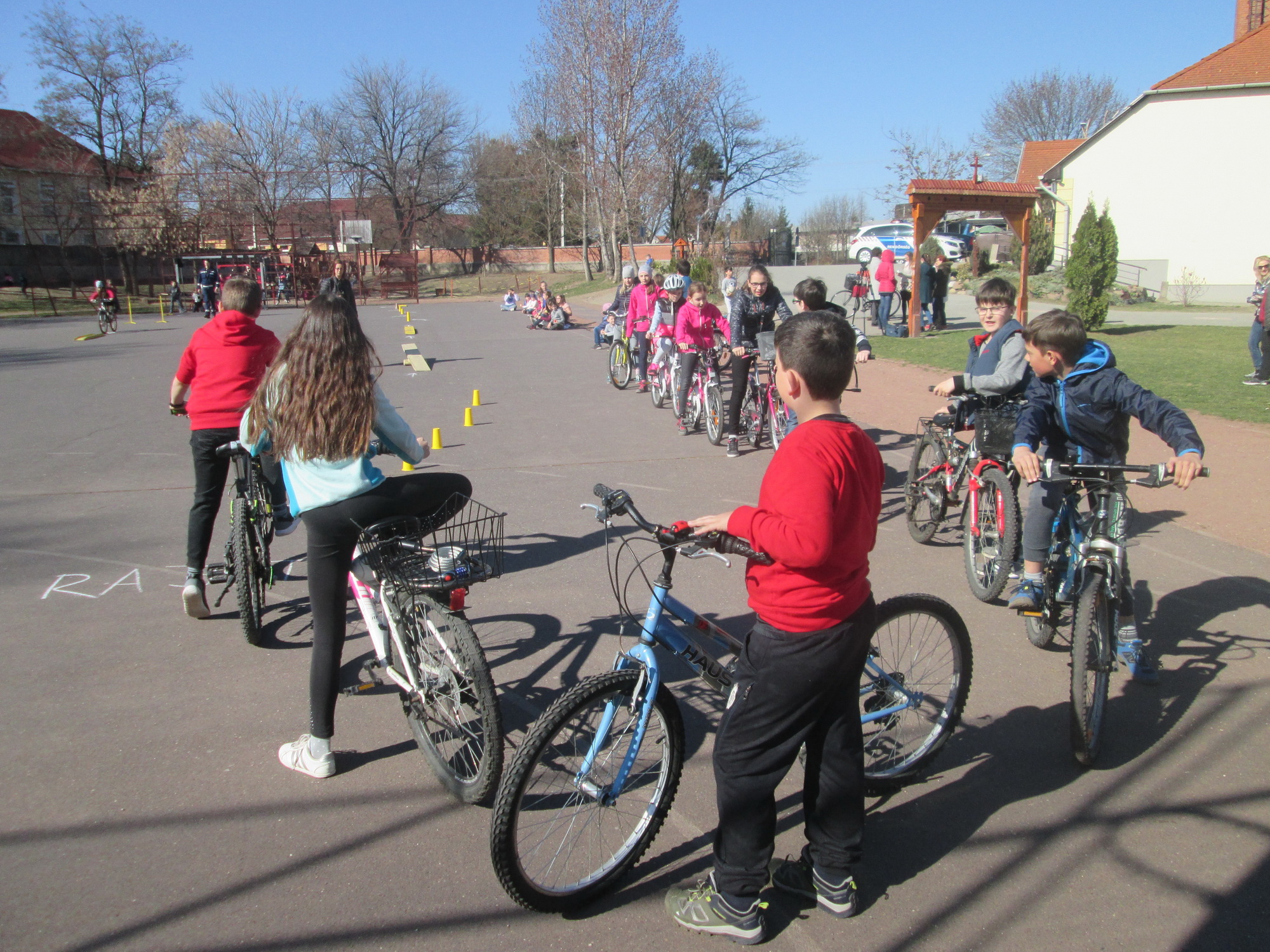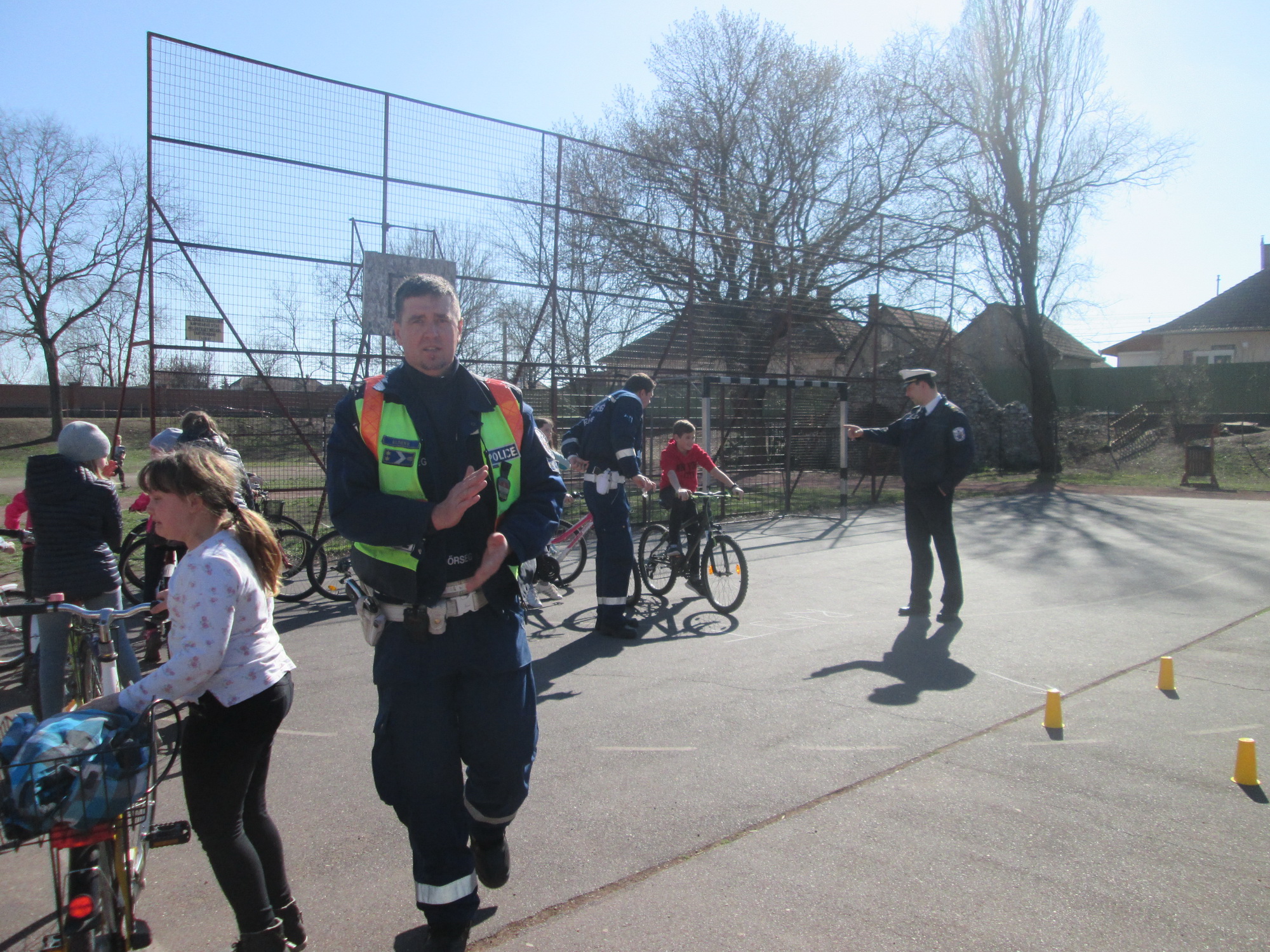 Kovács István rendőr őrnagy a Mezőkövesdi Rendőrkapitányság Közlekedésrendészeti Osztályának fővizsgálója megismertette a gyereket a kerékpáros és gyalogos közlekedés szabályaival, és ezen szabályok gyakorlati alkalmazásával az iskola udvarán felállított kerékpáros ügyességi pályán keresztül.