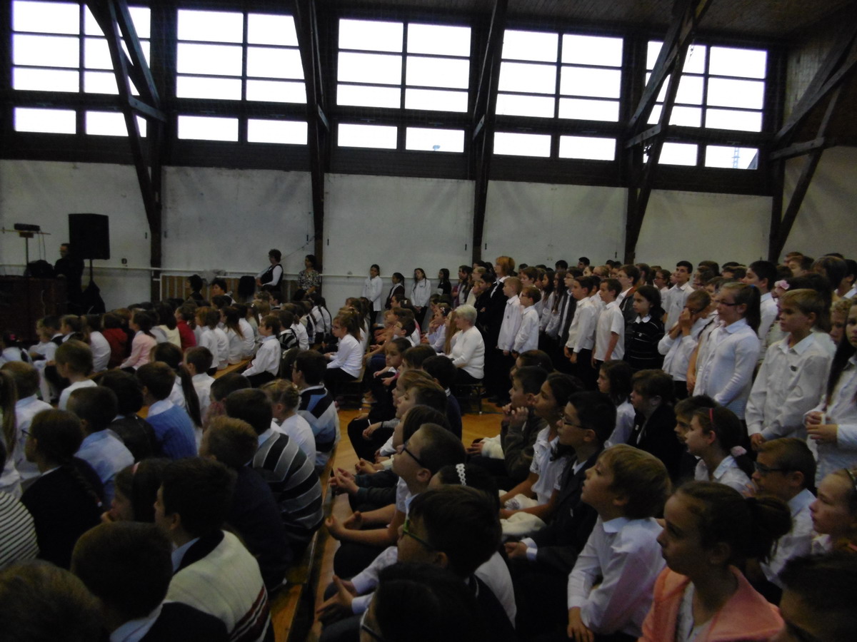 Verses-zenés összeállításunkban minden osztály legjobbjai vettek részt. Nagy öröm volt számunkra, hogy mostani tanítványaink mellett régi diákjaink is jelen voltak ünnepségünkön. Ők meghallották hívó szavunkat, és eljöttek velünk ünnepelni. Van közöttük vegyészmérnök, hegedűtanárnő, tanítónő, óvónő, egyetemi hallgató, középiskolás diák, leendő mérnök, matematikus. Ők beálltak az énekkar soraiba és verset is mondtak. Közülük Török Bernadett és Nagy Mátyás csodás hegedűjátékukkal kápráztatták el a közönséget.