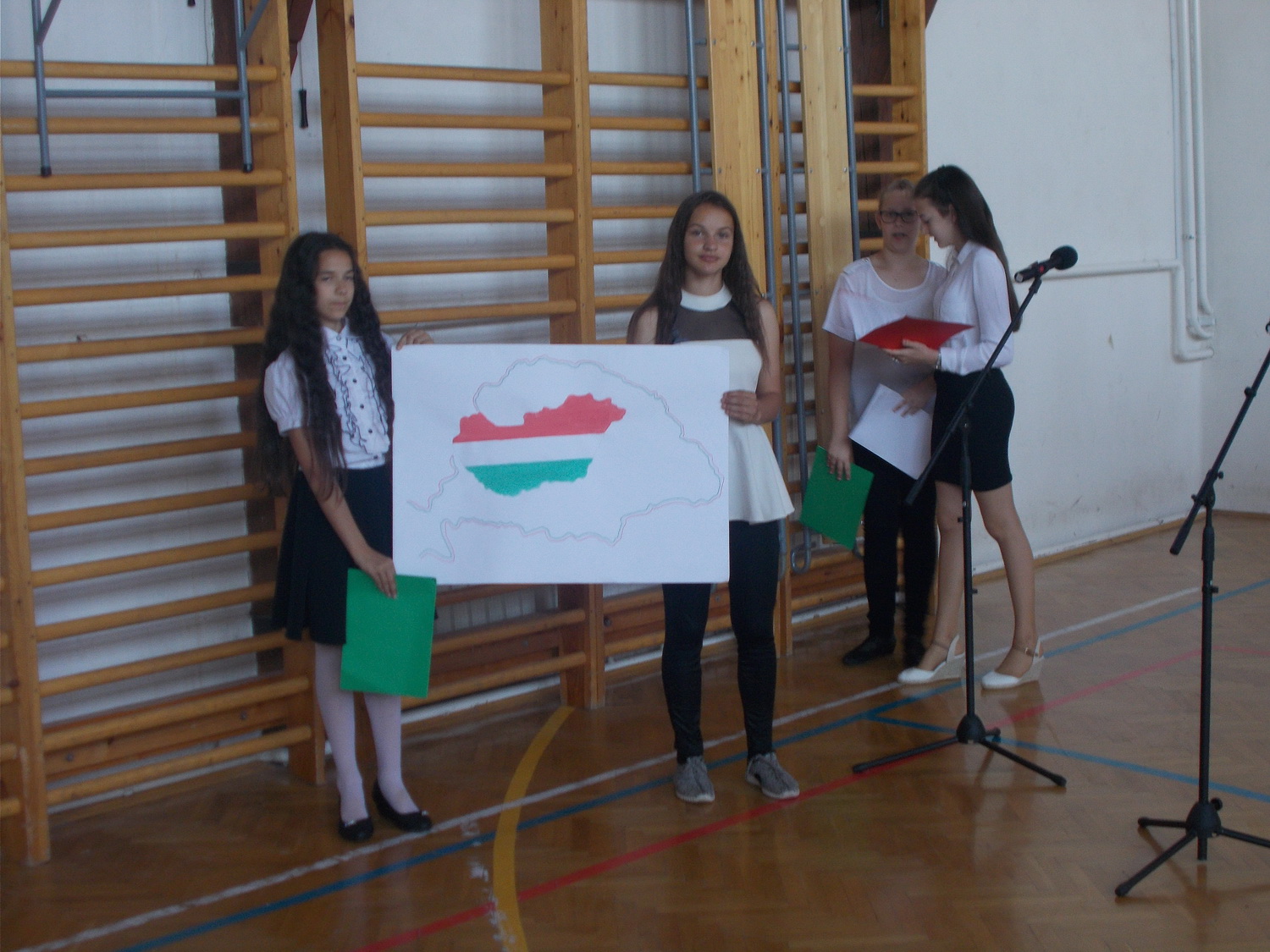 2018. június 4-én a Nemzeti Összetartozás Napja alkalmából iskolai ünnepséget rendeztünk. A műsorban, – amit Vasasné Máté Magdolna állított össze – 4.b, 6.a és 6.b osztályos tanulók szerepeltek.