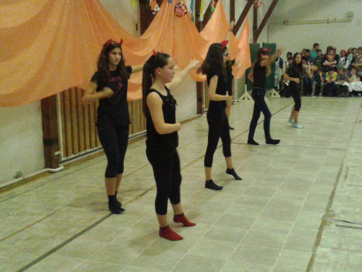 Az estet a rockisok remek táncai nyitották meg. A jelmezes felvonulás után vidám móka, tánc, szaladgálás vette kezdetét, egészen 7 óráig. Az osztályokban pedig finom sütik, szendvicsek, innivalók vártak bennünket.